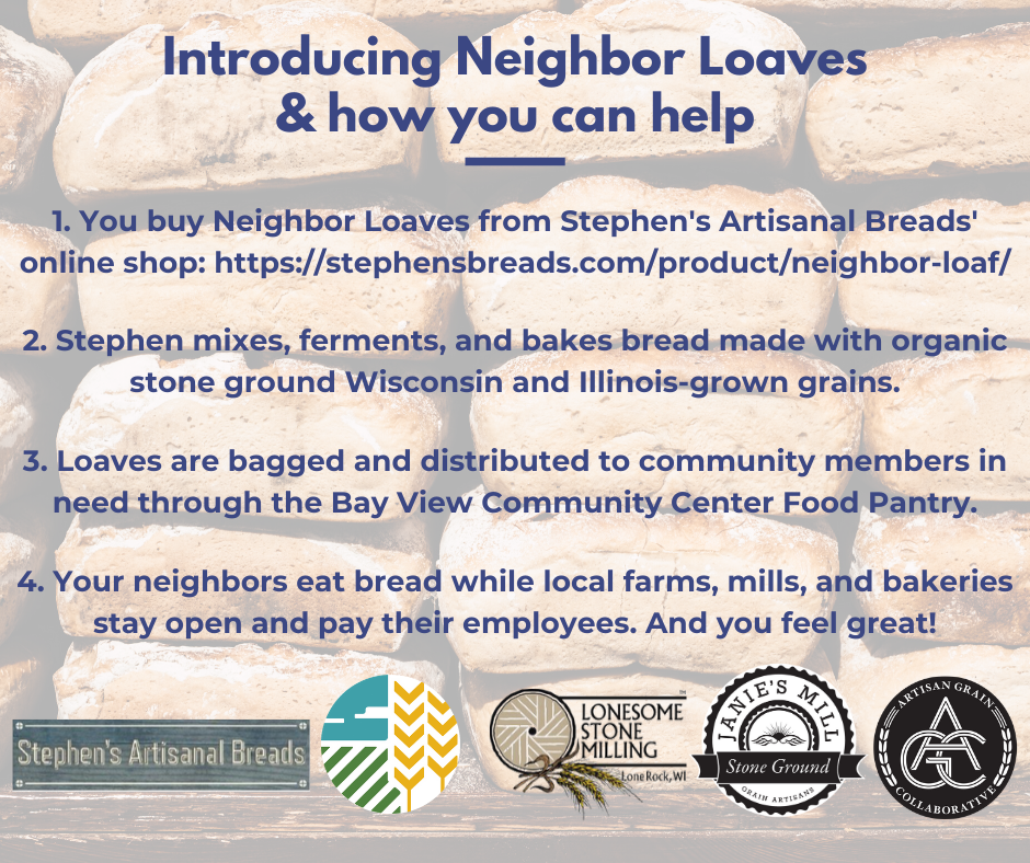 3. Neighbor Loaves will be offered to Bay View Community Center Food Pantry for distribution to community members in need of bread.